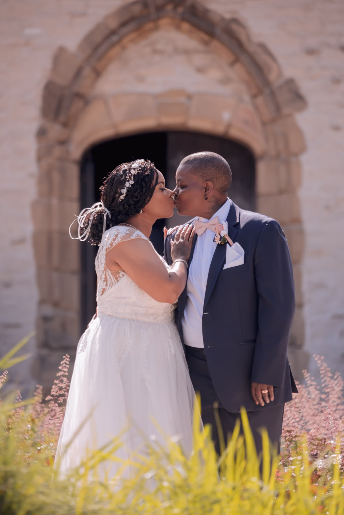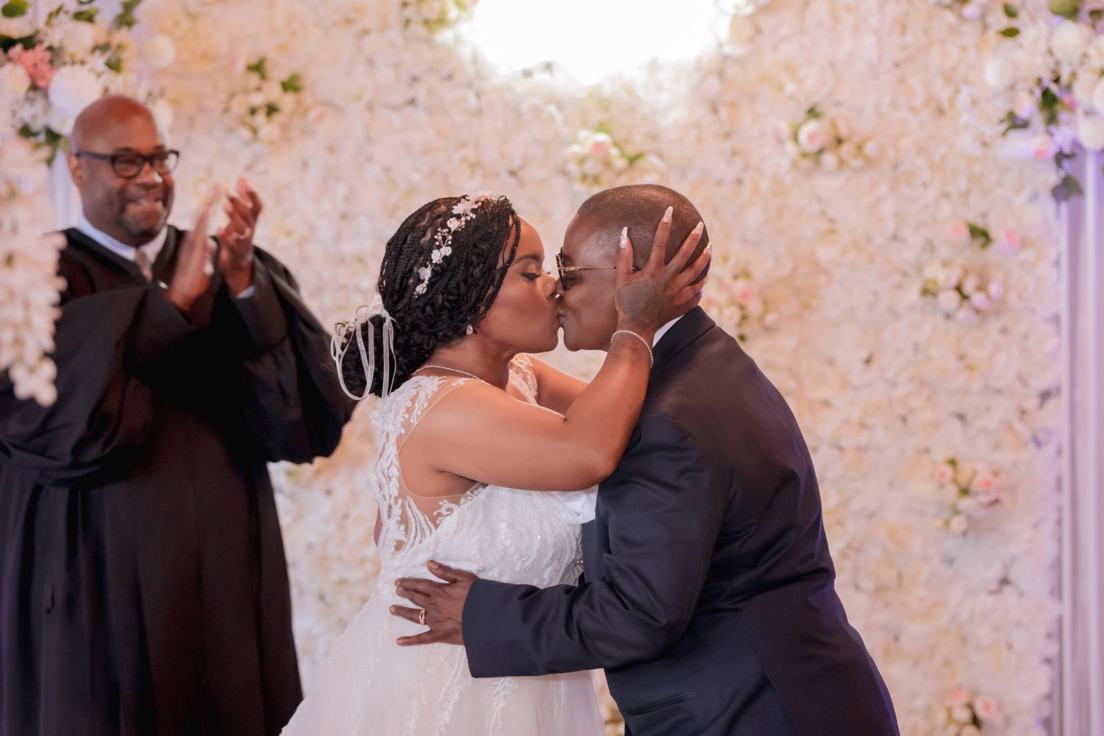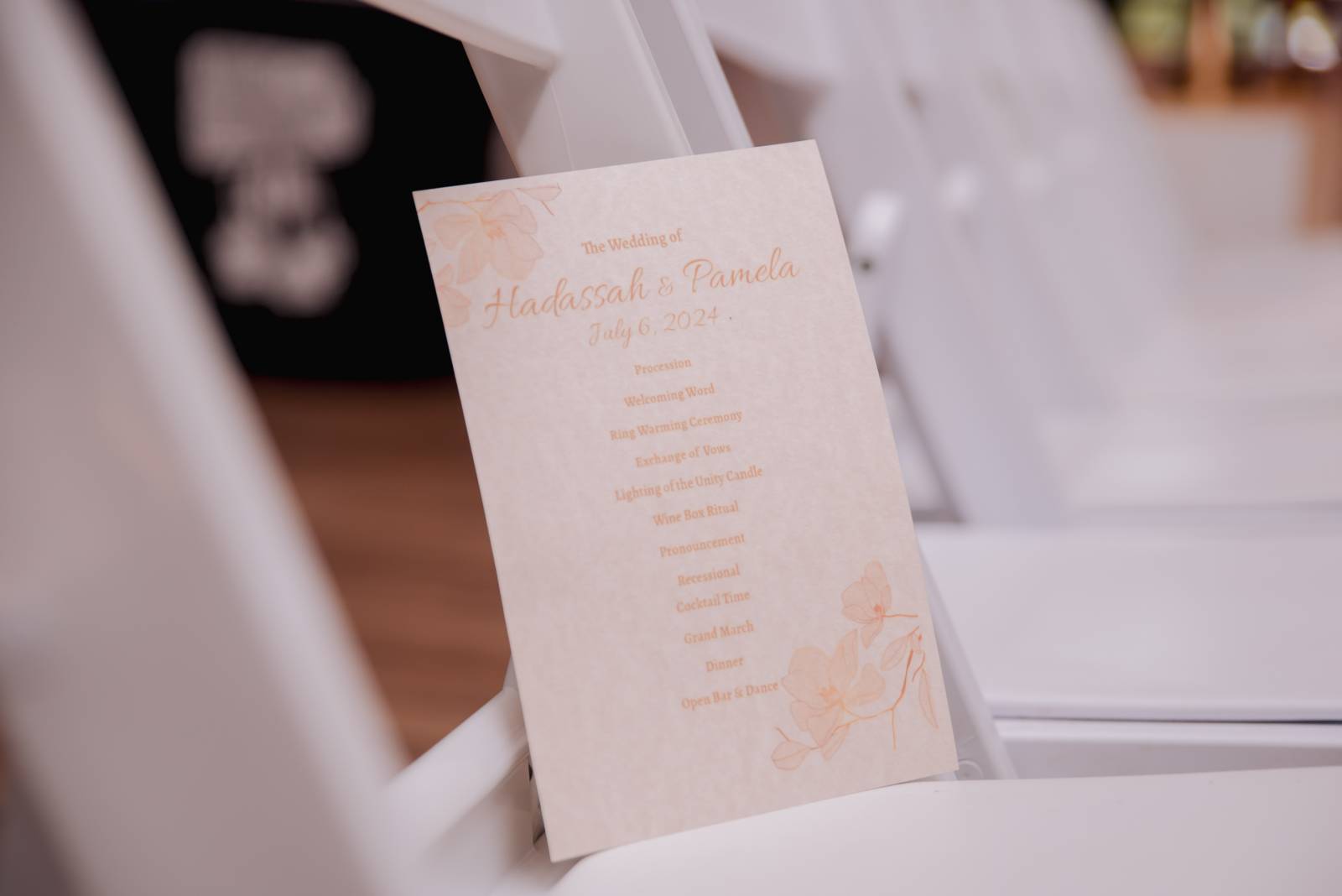 Judge Mosley officiated their ceremony. In addition to vows, Hadassah and Pam chose to include thoughtful details and traditions, including a ‘handfasting’ ritual. Originating in ancient Celtic times, this involved tying their hands together to symbolize binding their lives.