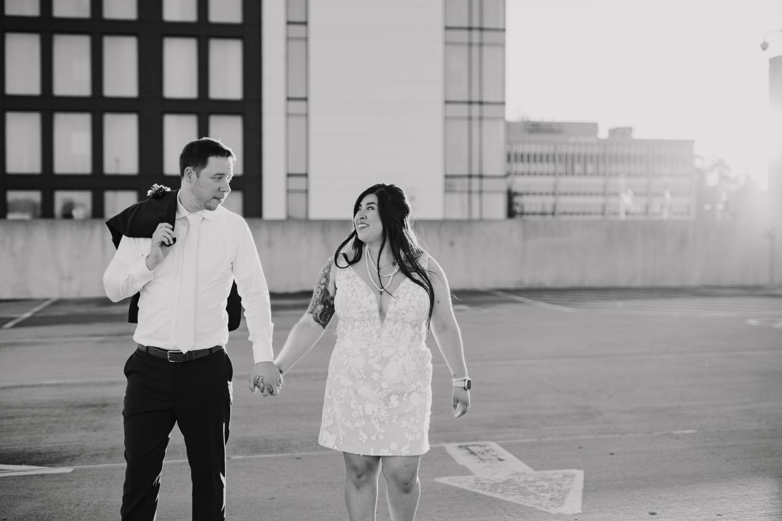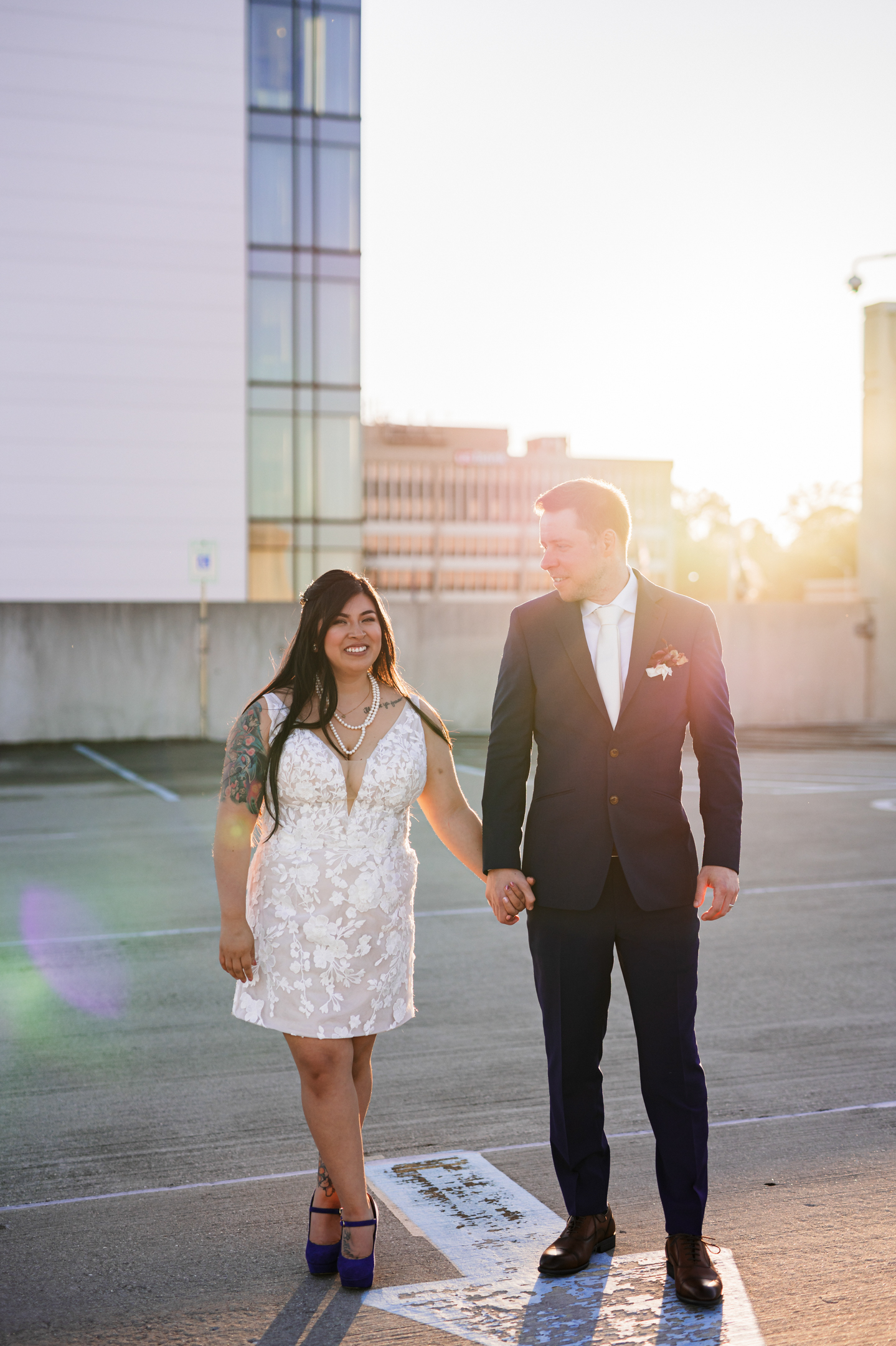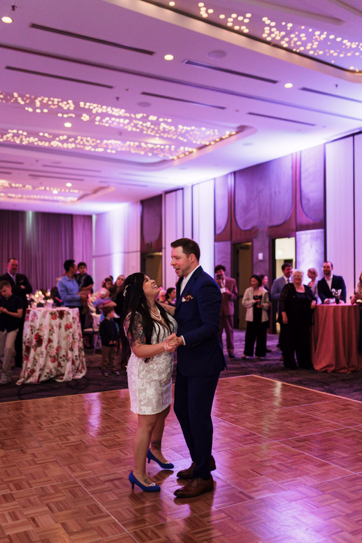 Jocelyn opted for a short floral lace dress for her reception, a perfect blend of elegance and comfort. The delicate lace details and modern cut allowed her to move freely and enjoy the evening with family and friends. The dress added a fresh, playful touch to the celebration while staying true to the timeless style of the day.