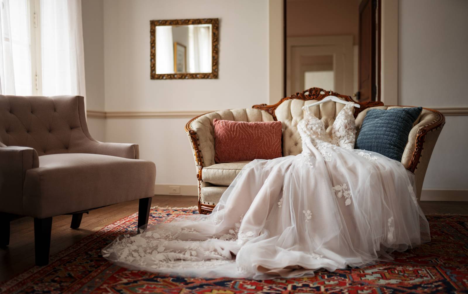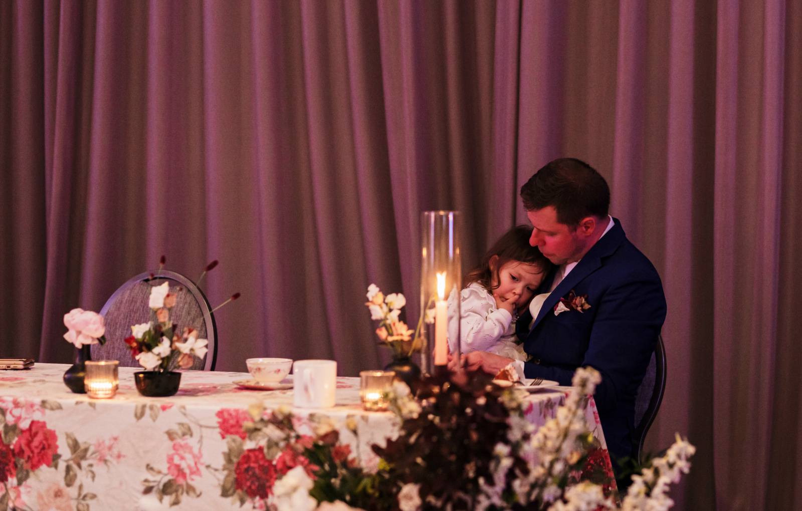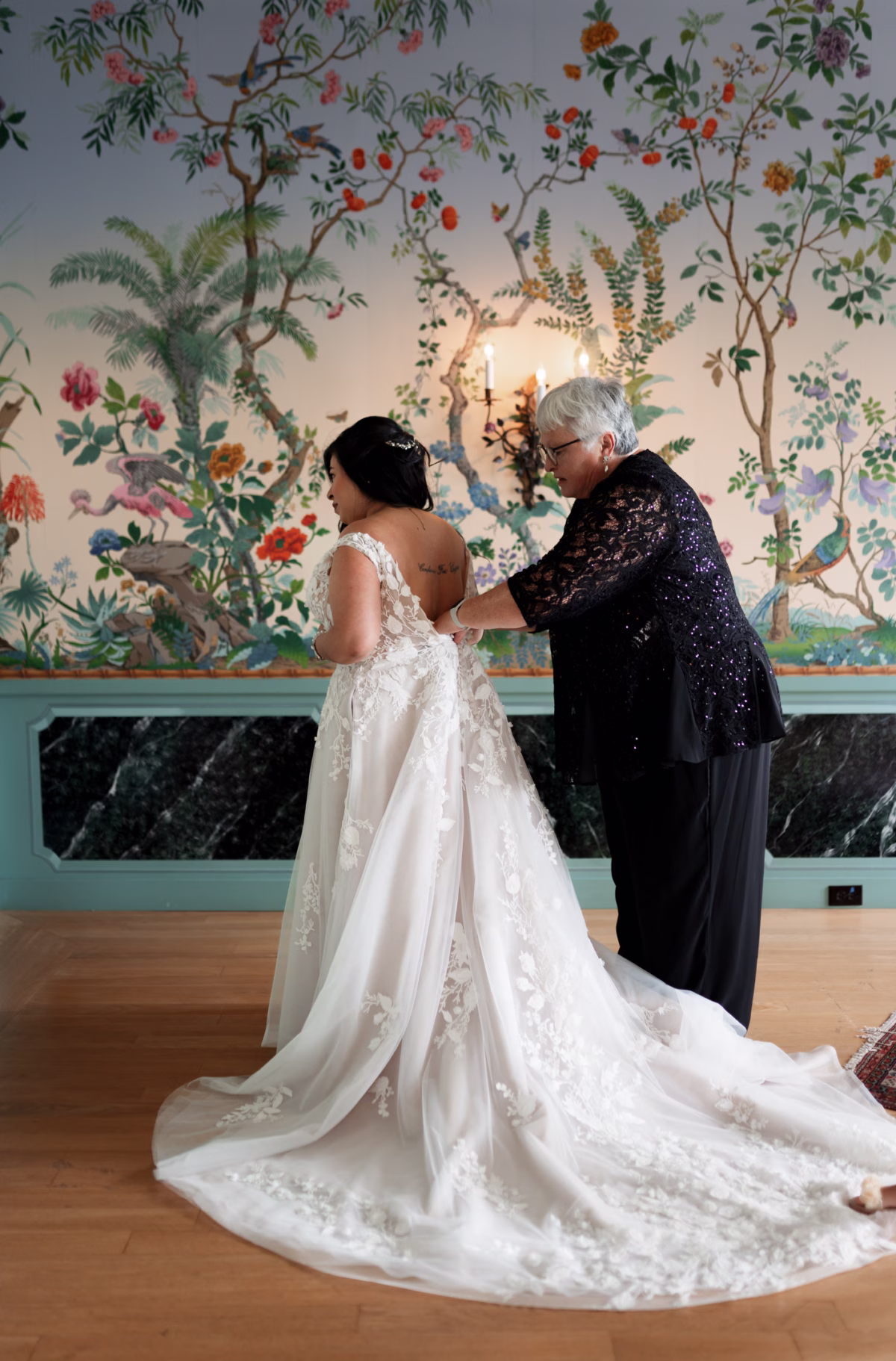 Jocelyn opted for a short floral lace dress for her reception, a perfect blend of elegance and comfort. The delicate lace details and modern cut allowed her to move freely and enjoy the evening with family and friends. The dress added a fresh, playful touch to the celebration while staying true to the timeless style of the day.