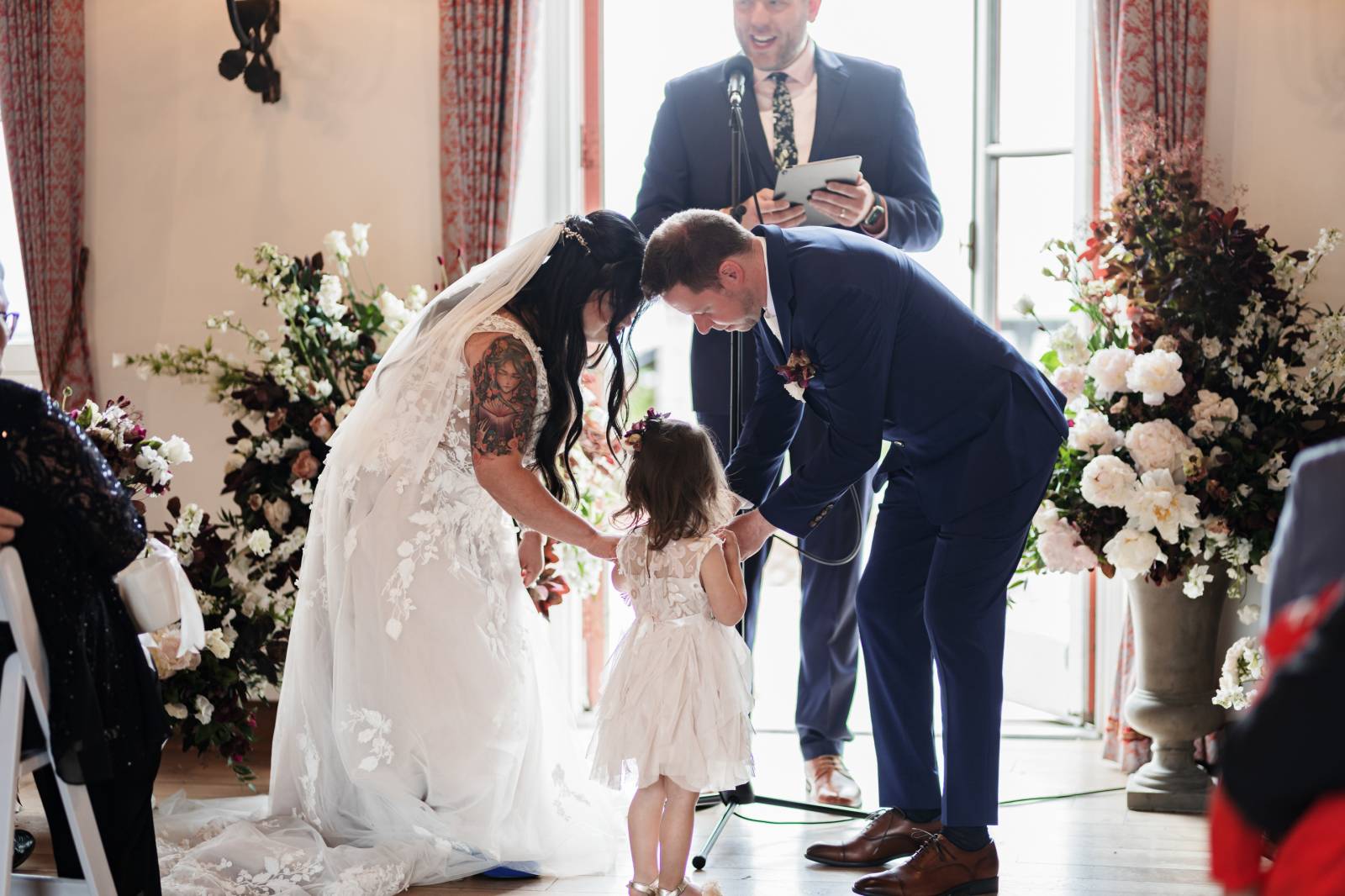 It was extremely important for Jocelyn and Neal to include their daughter in every part of the day, from the ceremony and reception to the dance. She was the flower girl, the sole member of the wedding party, and received a special bracelet at the ceremony during the ring exchange. While their daughter, now a toddler, was a bit too tired for a father-daughter dance, she had plenty of time to snuggle and soak up the celebration.