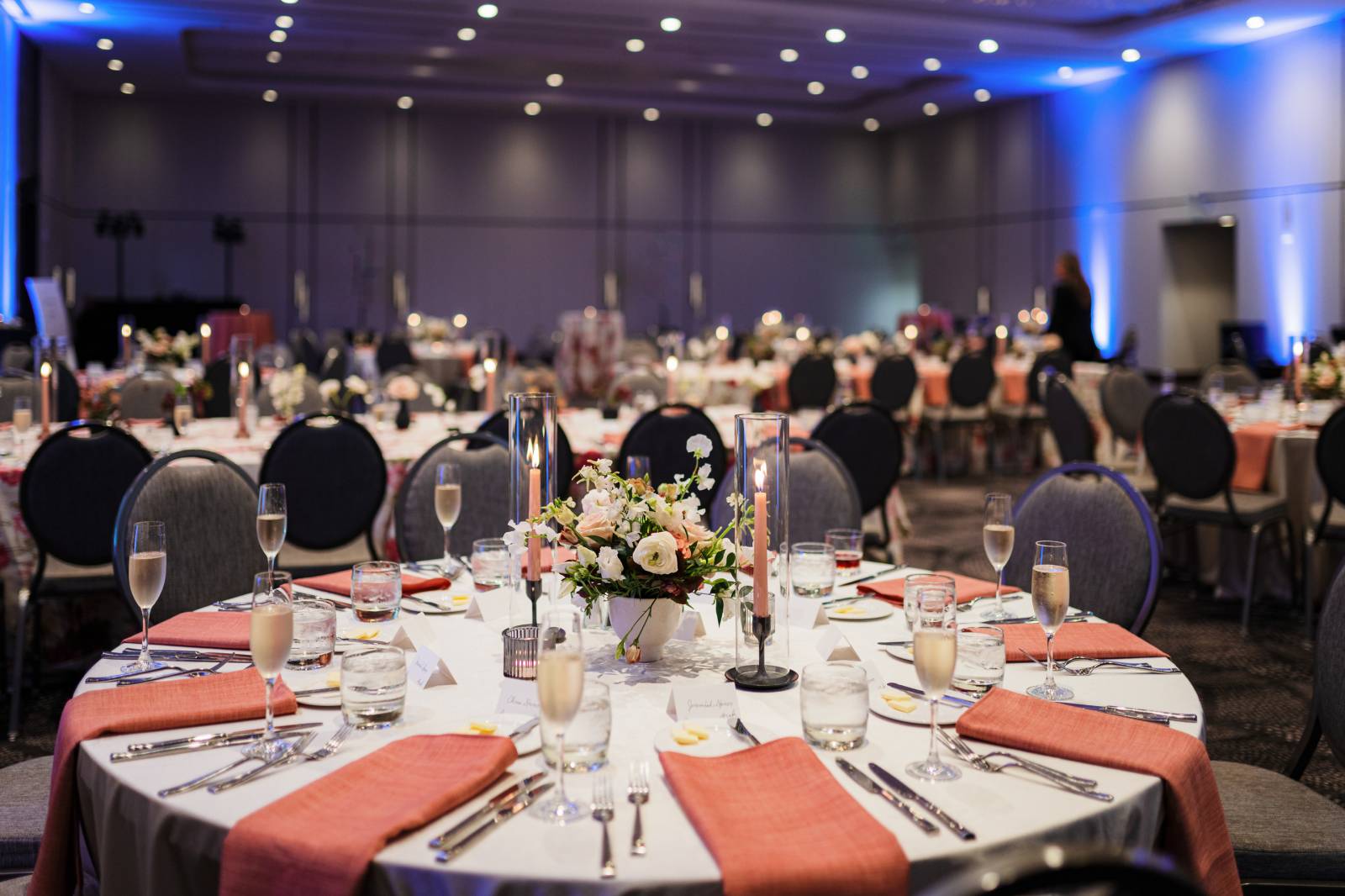 The reception was held at Renaissance Milwaukee West Hotel, making the transition easy and convenient for guests, the majority of whom traveled from out of town with small children. Many different spaces in the hotel were utilized, with the welcome dinner, cocktail hour, reception, and dance all transitioning to separate locations within the hotel.