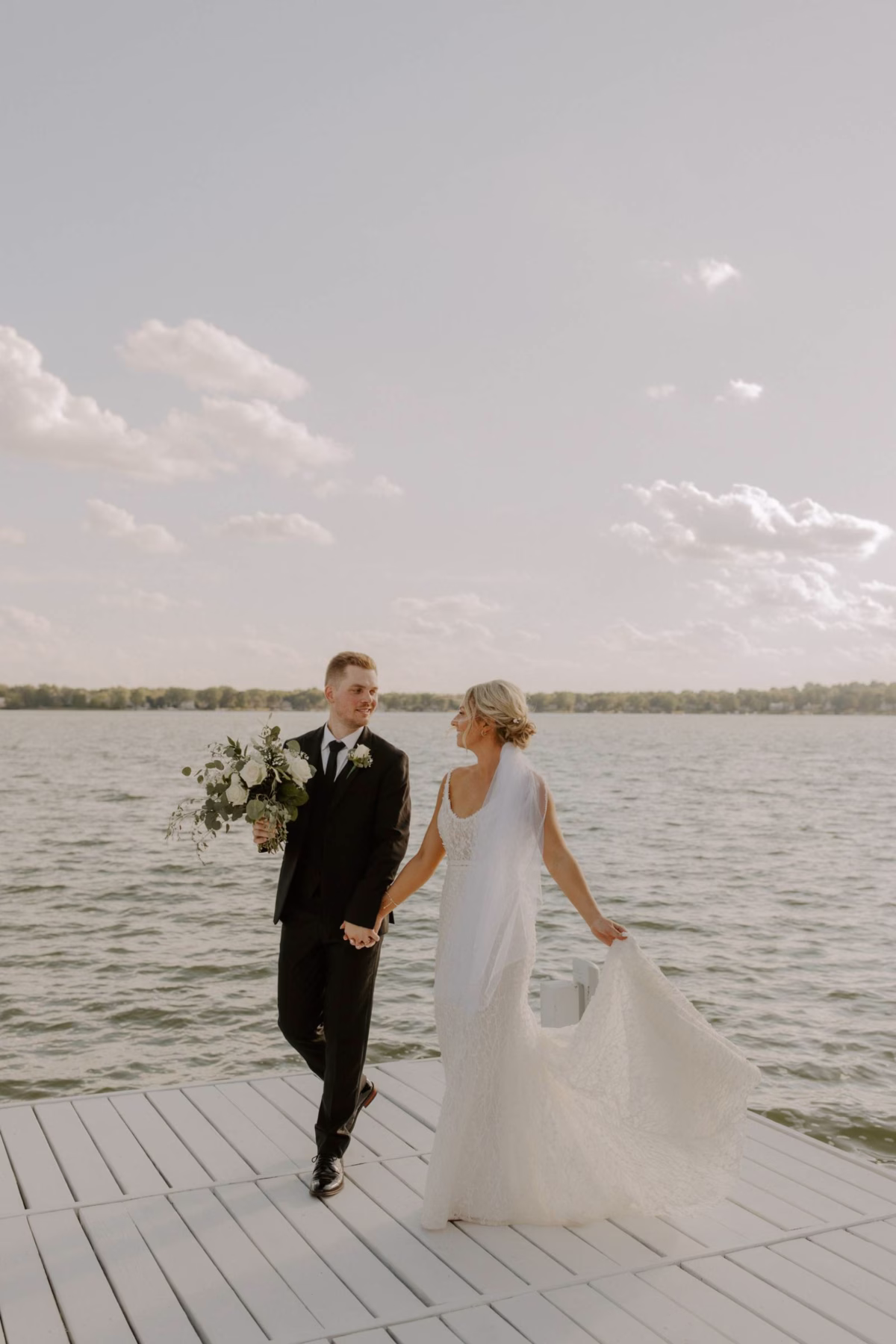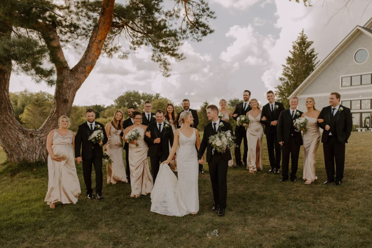 Kelly & Trent’s Carriage House wedding in Oconomowoc was the perfect mix of timeless elegance and heartfelt celebration, featuring classic black, white, & champagne tones, romantic florals, and sparkling cold sparks.
