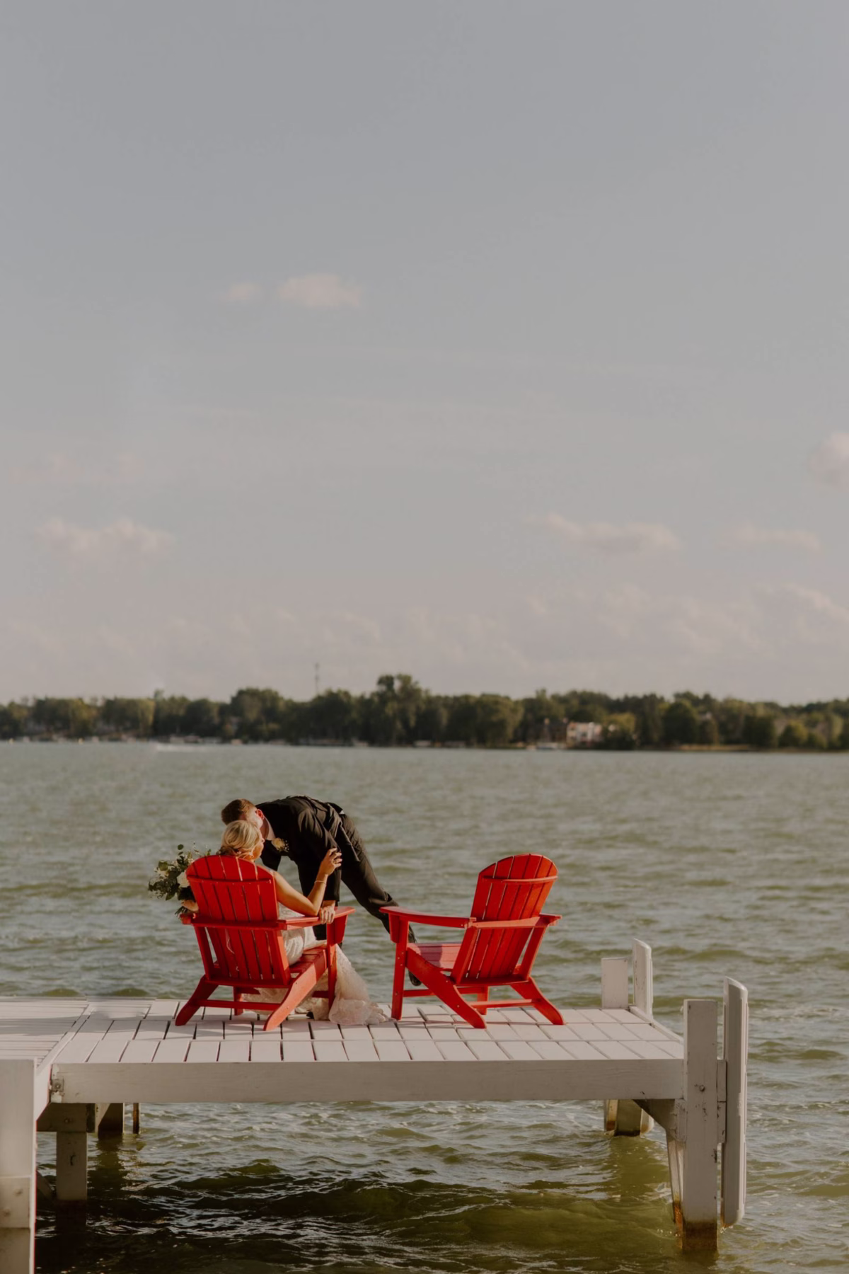 Located in scenic Oconomowoc, The Carriage House is a newly renovated venue featuring beautiful indoor and outdoor spaces just steps away from Lac La Belle. The couple tied the knot in an outdoor ceremony, framed by a hexagonal backdrop and the natural beauty of Wisconsin.