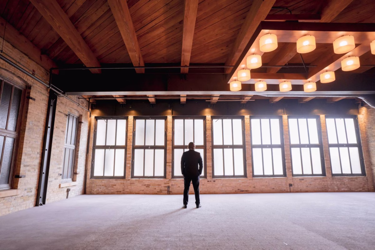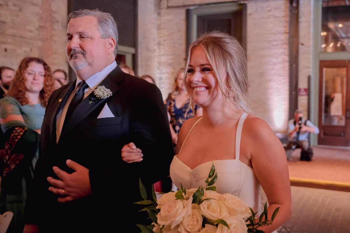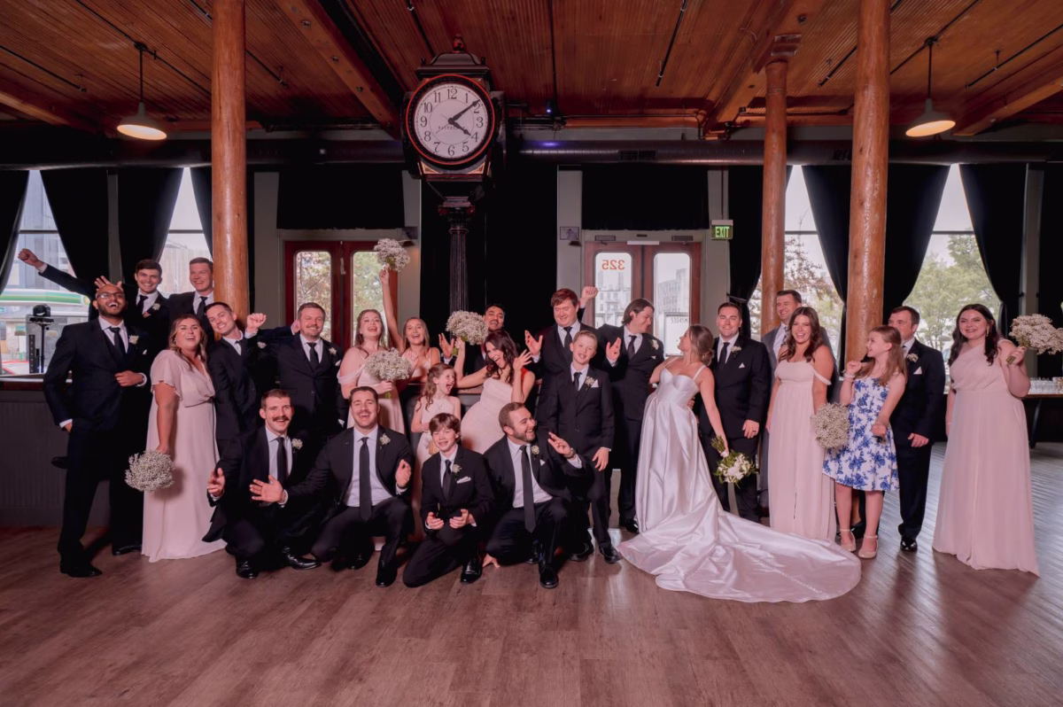 Set in the iconic Pritzlaff, Emily & Griffin’s Milwaukee wedding embraced simple, classic design with unique touches inspired by their love story. From personalized signage to record guest books and rooftop photos, every detail reflected their personalities.