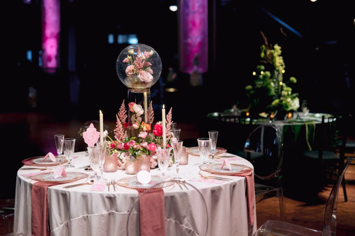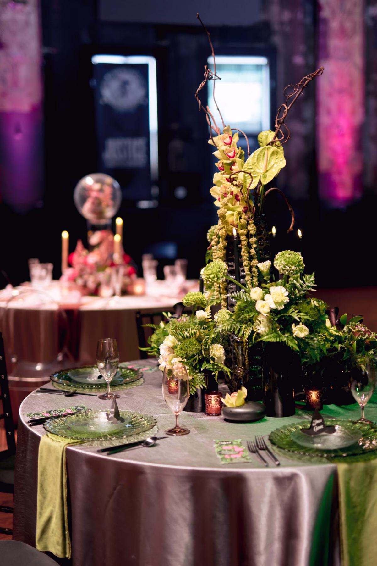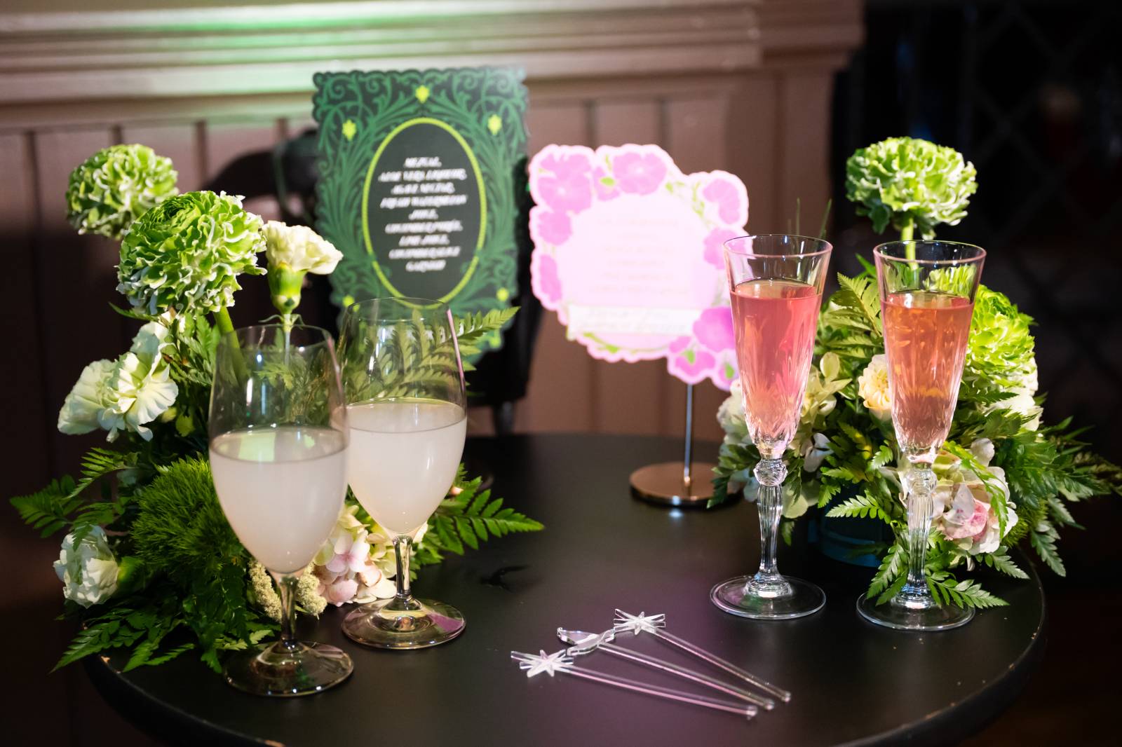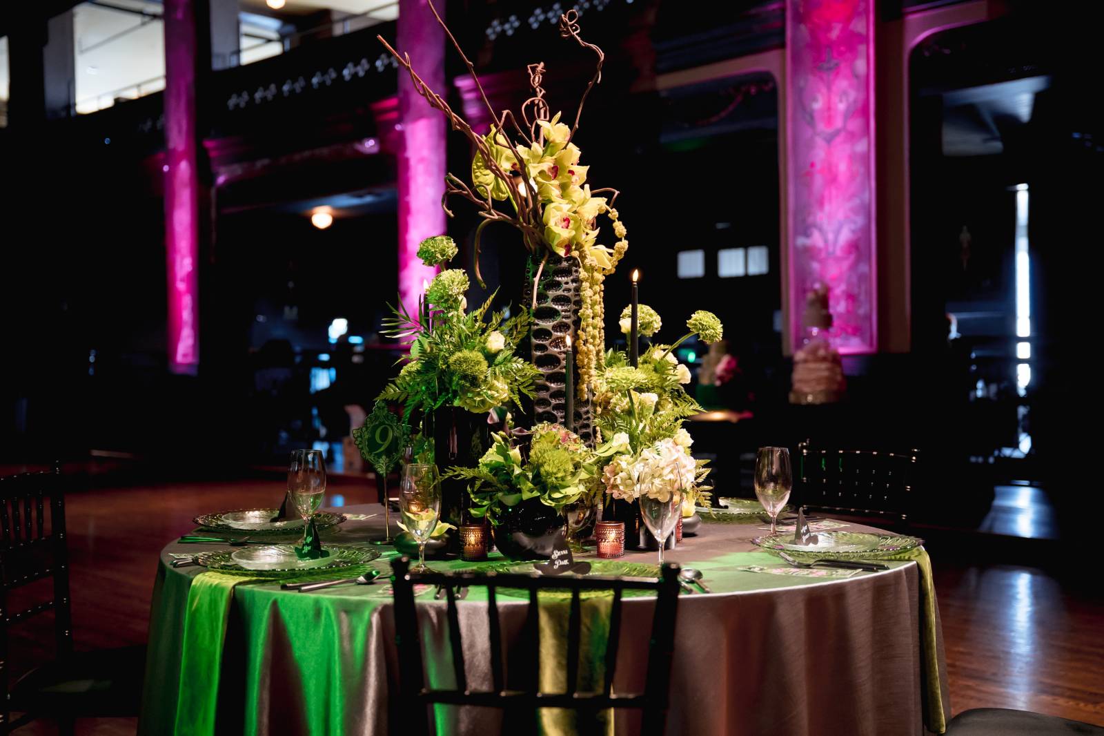 OSO IN LOVE Wedding & Event Curators are known for versatility, and are always up for bold, colorful, and immersive designs. They wholeheartedly embraced the Wicked-inspired theme, expertly leading and coordinating the vendor team to create a unique take on a popular, awe-inspiring story.