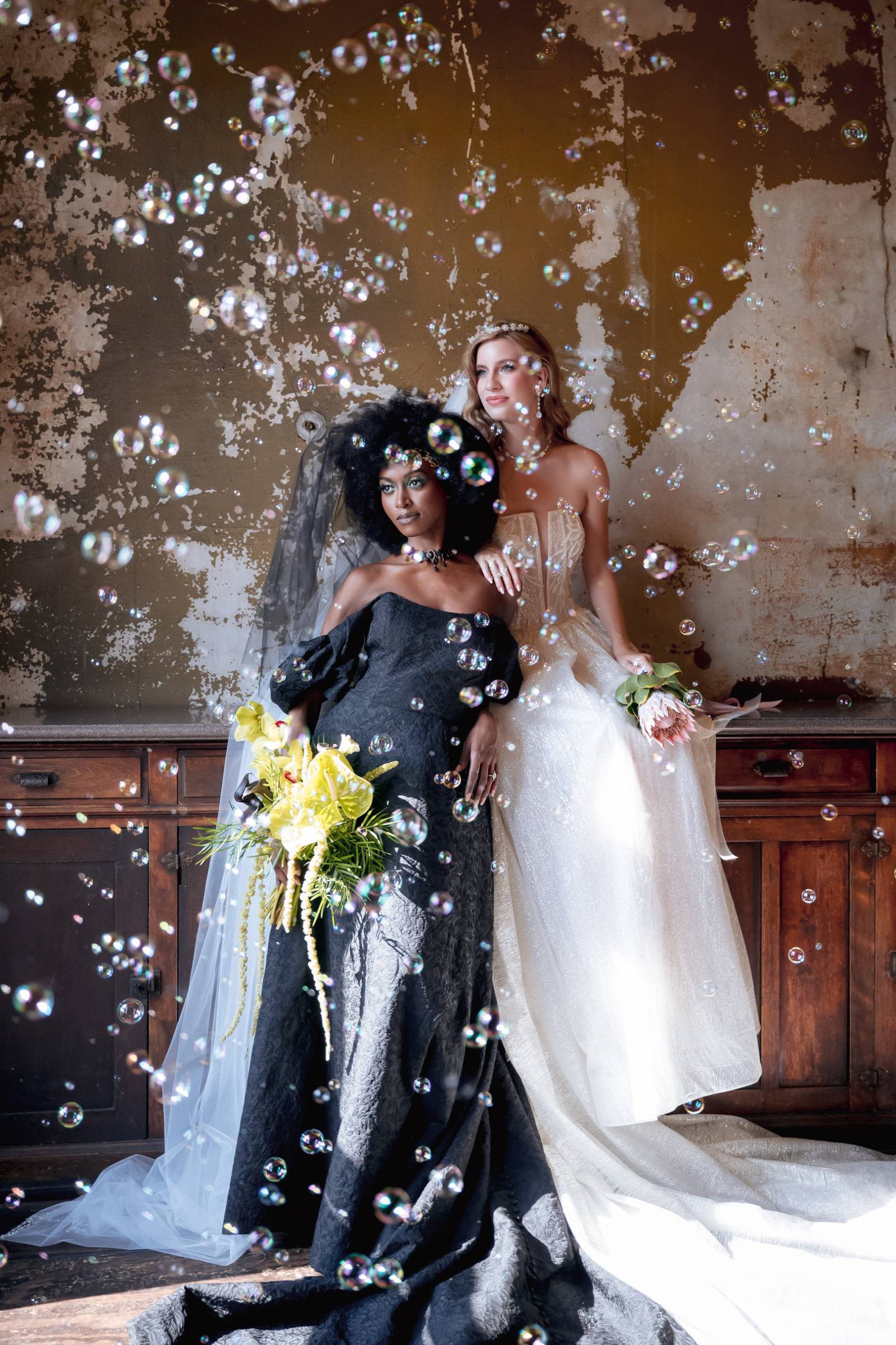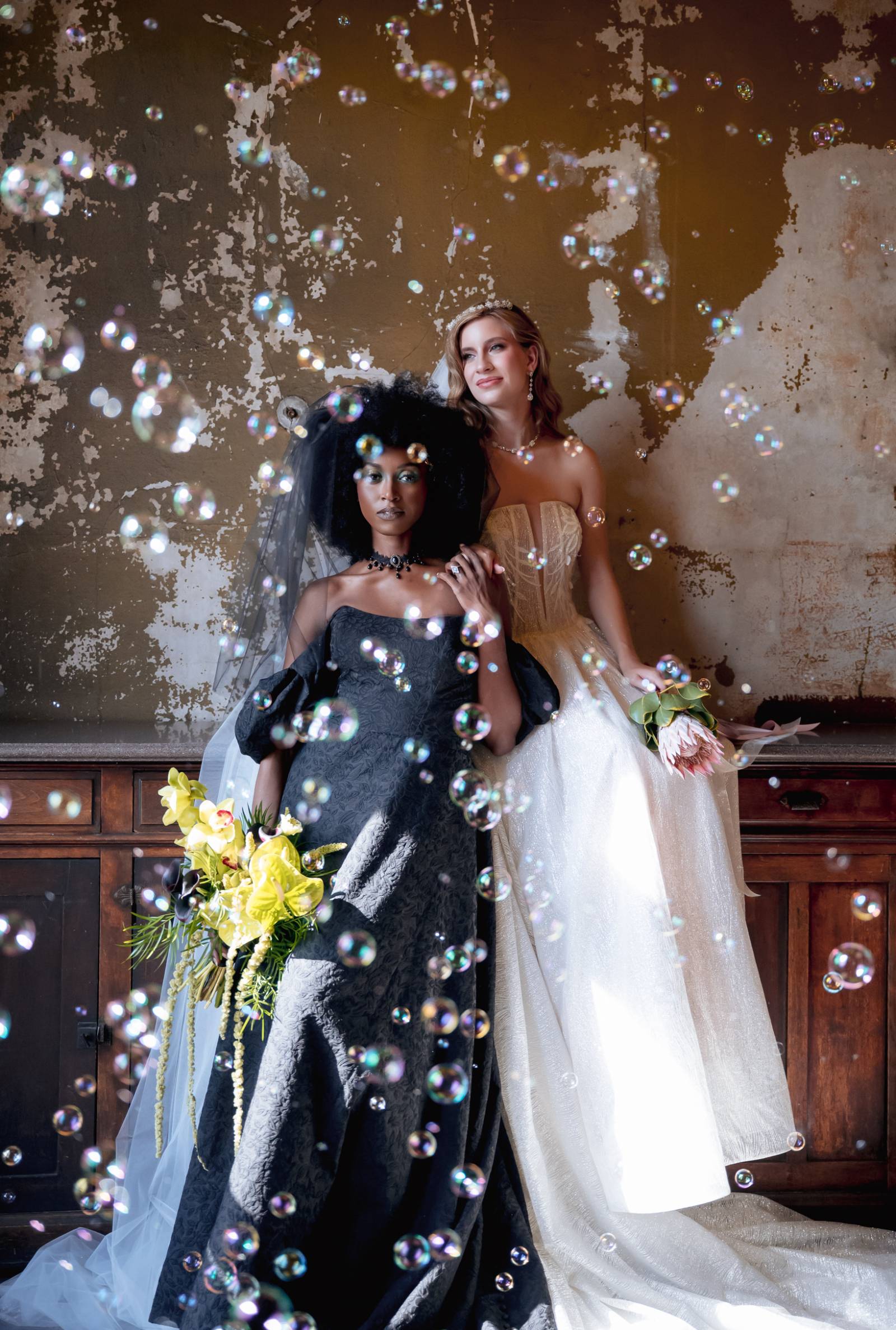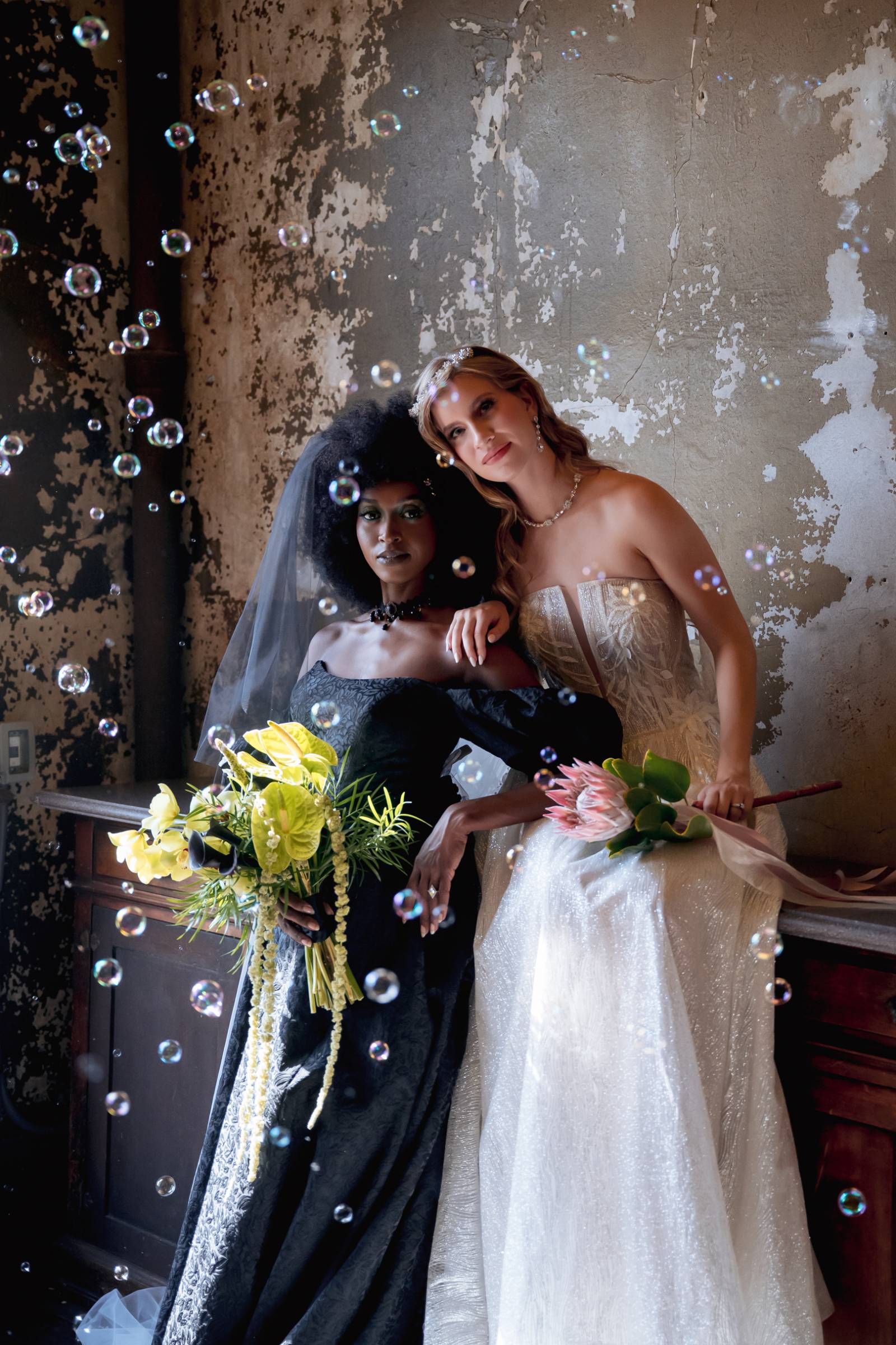 Boxcar Photography’s videography beautifully captured the energy of this Wicked-ly fun wedding editorial, weaving together motion (hello, bubbles!), stunning details, and authentic moments between models. Continue below to view the editorial in photographs by Reminisce Photography.