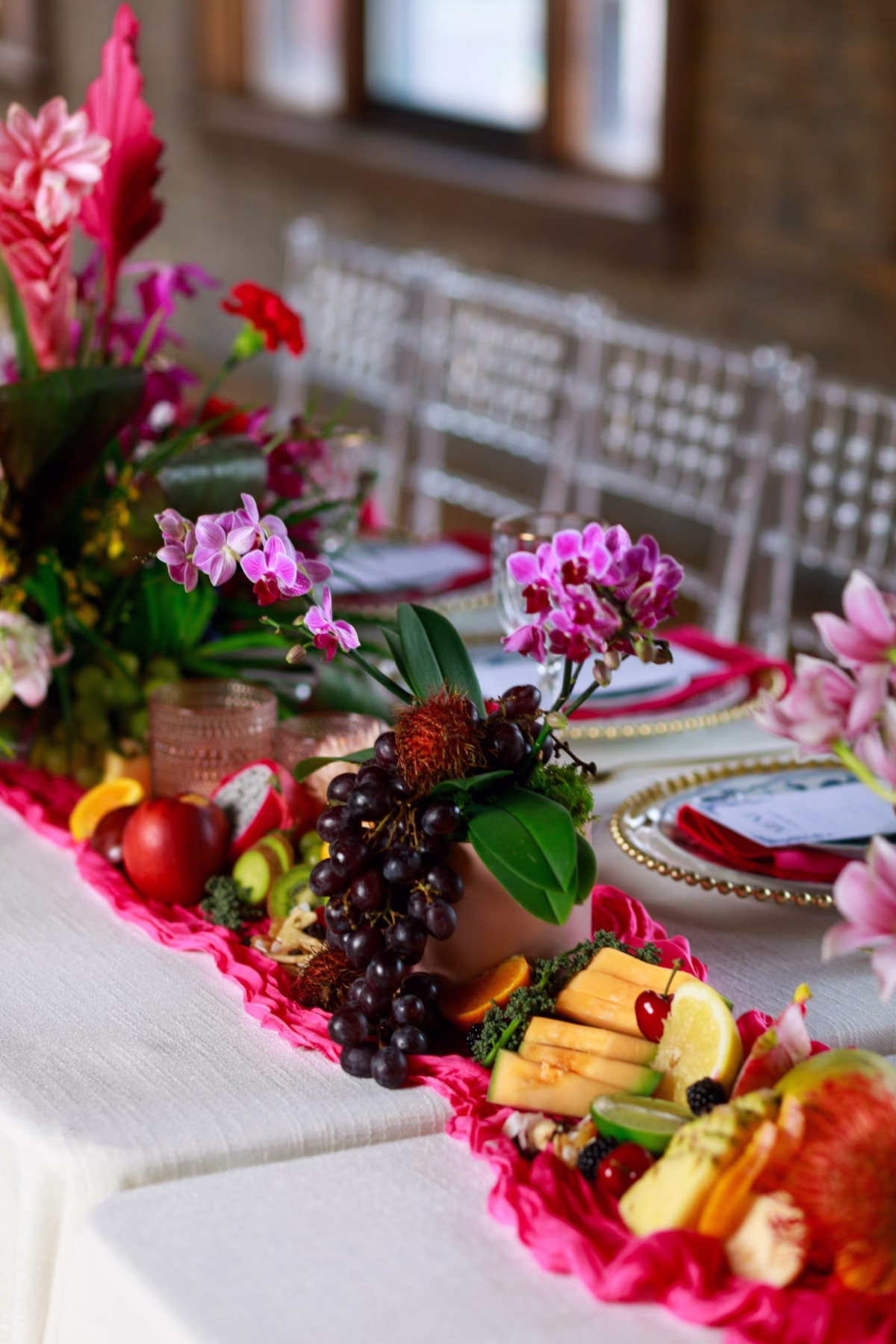 Playful, bold, and bursting with color, this pink-forward styled shoot brought a fresh, modern energy to every scene. Planned and designed by Charmate Events, the day leaned into lively details, creative textures, and a vibrant palette that blended contemporary whimsy with tropical-inspired flair. From the tablescape to the fashion, every element celebrated personality, movement, and joyful expression.