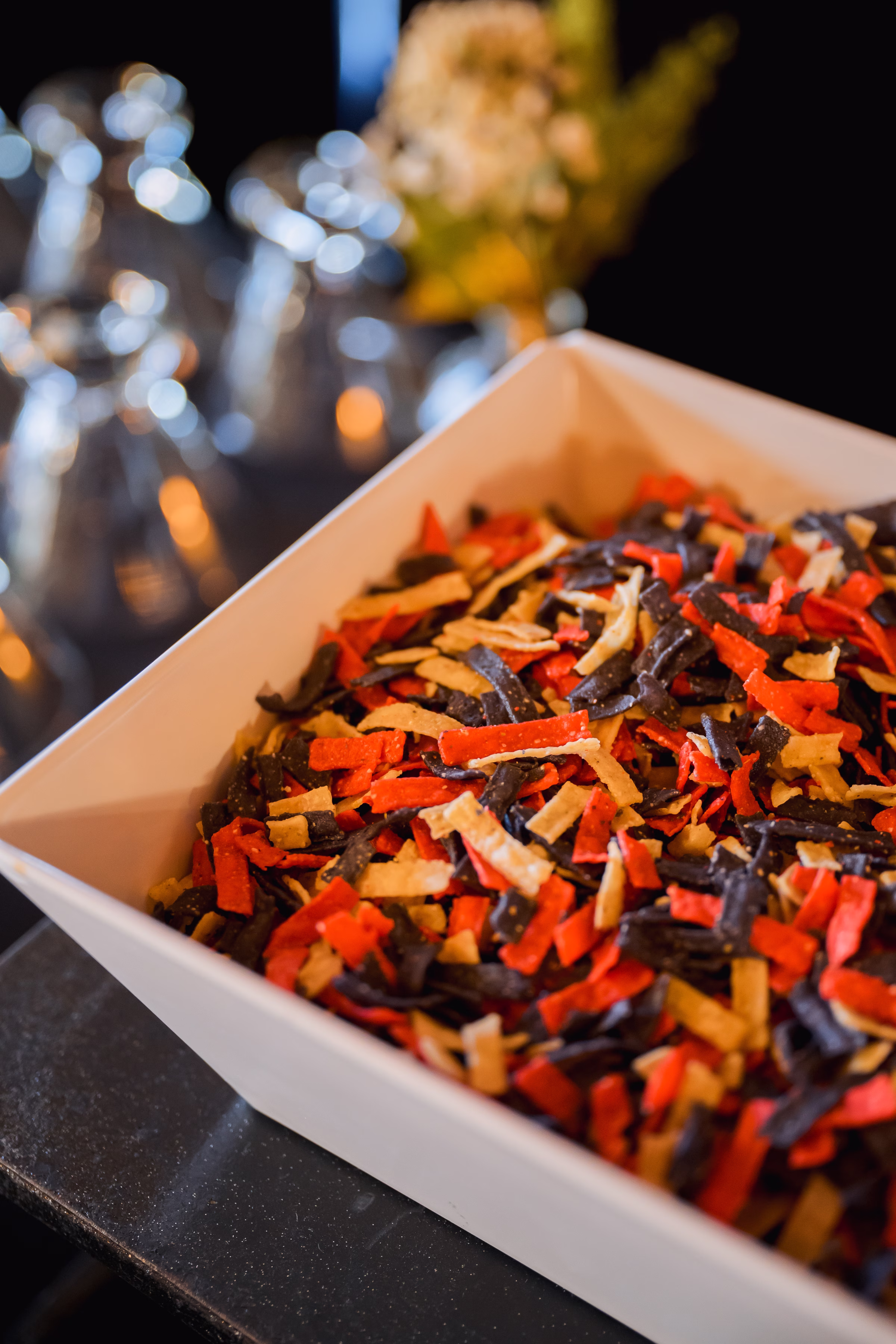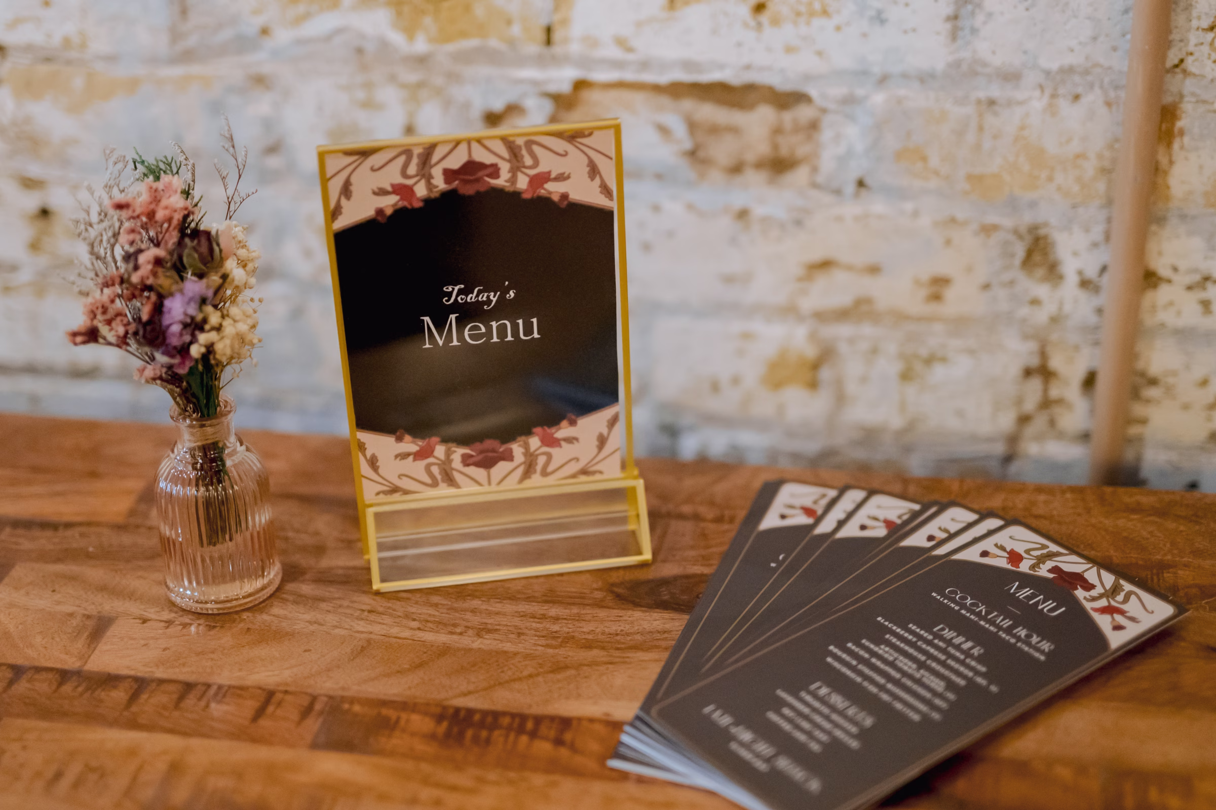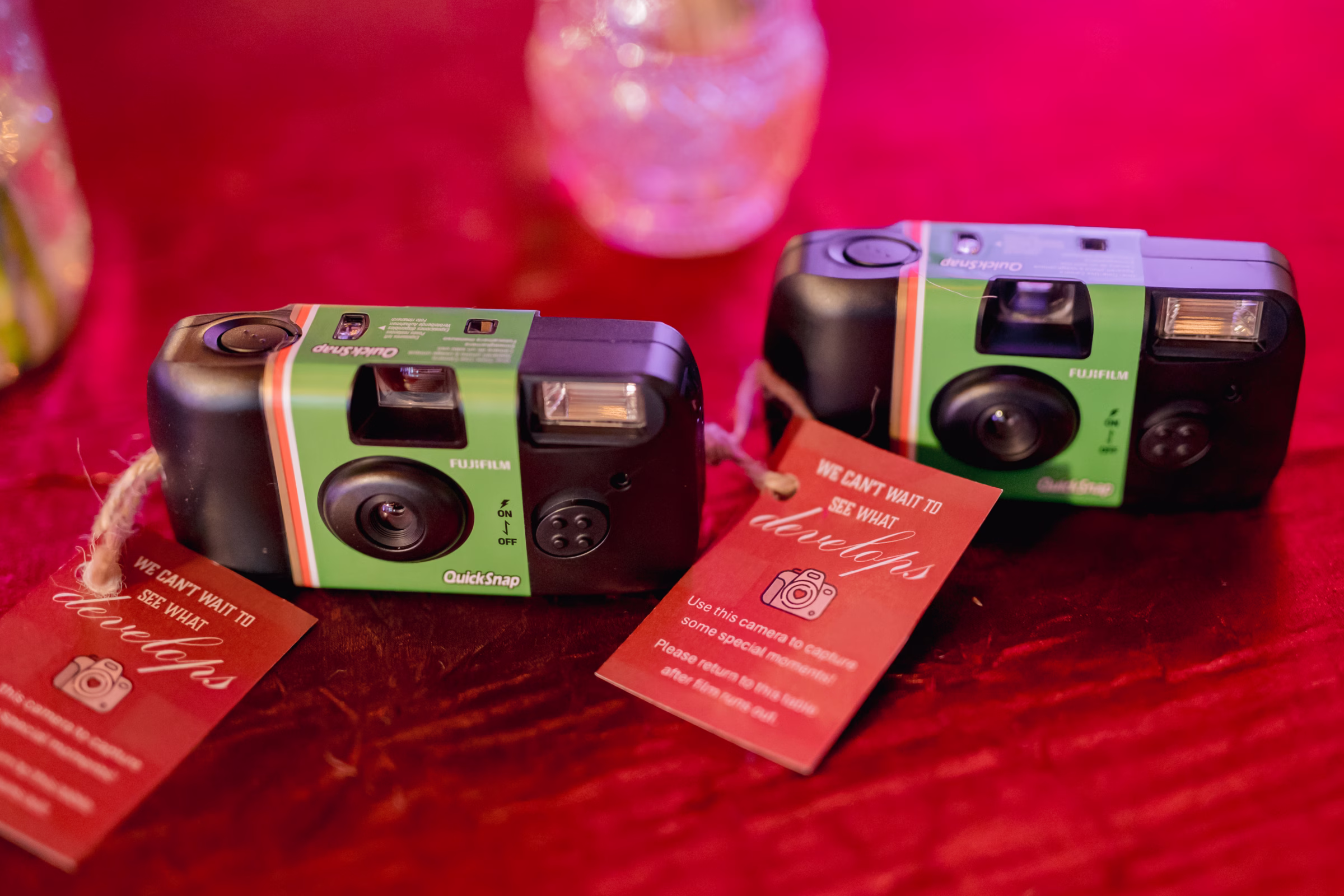 The reception included many heartfelt speeches, tasty bites, and unique details handpicked by the couple. Guests were gifted disposable camera favors to capture their unique perspective, and signed a custom vinyl record of the couple’s first dance song, “Stand by Me” covered by Florence and the Machine.