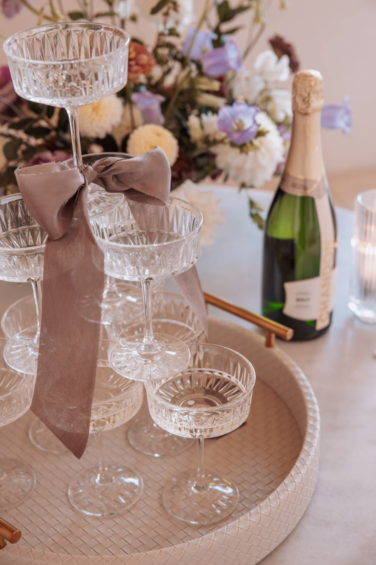 The Pearls & Prosecco color palette features a sophisticated mix of warm neutrals–beige, cream, tan, brown, and gray–that set the stage for effortless elegance. This timeless foundation allows for subtle pops of color, such as dusty lavender, blush, and mauve, to add a romantic touch to your florals and decor. Versatile and refined, it’s the perfect choice for a chic and stylish celebration.